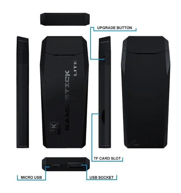 Consola de juegos de sistema dual compatible con HDMI 4KLa mini máquina de juegos portátil tiene un cuerpo ligero y compacto. Plug and play, no ocupa demasiado espacio y es fácil de transportar, adecuado para viajes y uso doméstico. Esta consola de videojuegos es adecuada para TV 4K de ultra alta definición/TV P 1080/ordenador/monitor/proyector, admite conexión compatible con HDMI, Y puede disfrutar de videojuegos animados e interesantes en la pantalla grande.