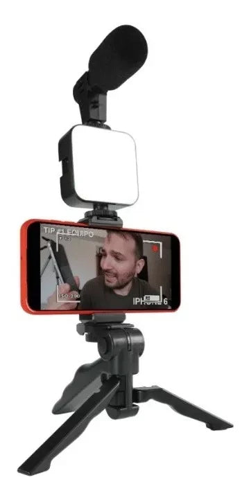 Características:Micrófono de reducción de ruido:el micrófono cuenta con un amplio rango de captación cardioide y una potente tecnología de cancelación de ruido, además de una cápsula de micrófono de alta calidad para una grabación de alta calidad.Luz LED de6500 K: la lámpara de 49 piezas proporciona la temperatura de color de la luz de 6500 K y una potencia de salida de 5 W, alimentada con 2 pilas AA (no incluidas), para una iluminación de video más brillante y uniforme.Abrazadera universal para teléfono:el rango de sujeción del soporte del teléfono es de aproximadamente 5,4-8,3 cm/2,13-3,27 pulgadas, ampliamente utilizado para la mayoría de los teléfonos inteligentes. El soporte de zapata fría superior permite un montaje rápido del micrófono y la luz LED.Mango de trípode de doble uso:diseñado con una placa plegable, el trípode es de doble aplicación para agarrar con la mano y colocar la mesa, la forma de diseño ergonómico hace que el agarre sea más cómodo.Aplicación amplia:El kit está diseñado para la grabación de video de teléfonos inteligentes con micrófono con conector TRRS de 3,5 mm, universal para hacer Vlog, entrevistas, transmisión en vivo, maquillaje en línea, chat de video y más.