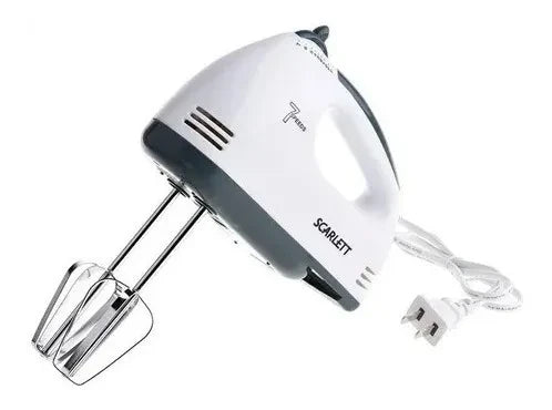 La batidora Scarlett HE-133 es práctica y sencilla de usar. Su diseño compacto y de fácil agarre te permitirá batir mezclas esponjas sin forzar tus brazos y muñecas. Podrás moler ingredientes en el mismo recipiente en el que se preparan y utilizarla para hacer diferentes tipos de purés, salsas y sopas. Además incluye 2 batidores de gancho. @@IMPORTANTE @@Cualquier duda o inquietud no dudes en hacernosla saber en la cajita de preguntas que se encuentra en la parte inferior de esta descripción. Somos distribuidores directos a nivel nacional, pregunta por precios al por mayor a partir de 3 unidades.