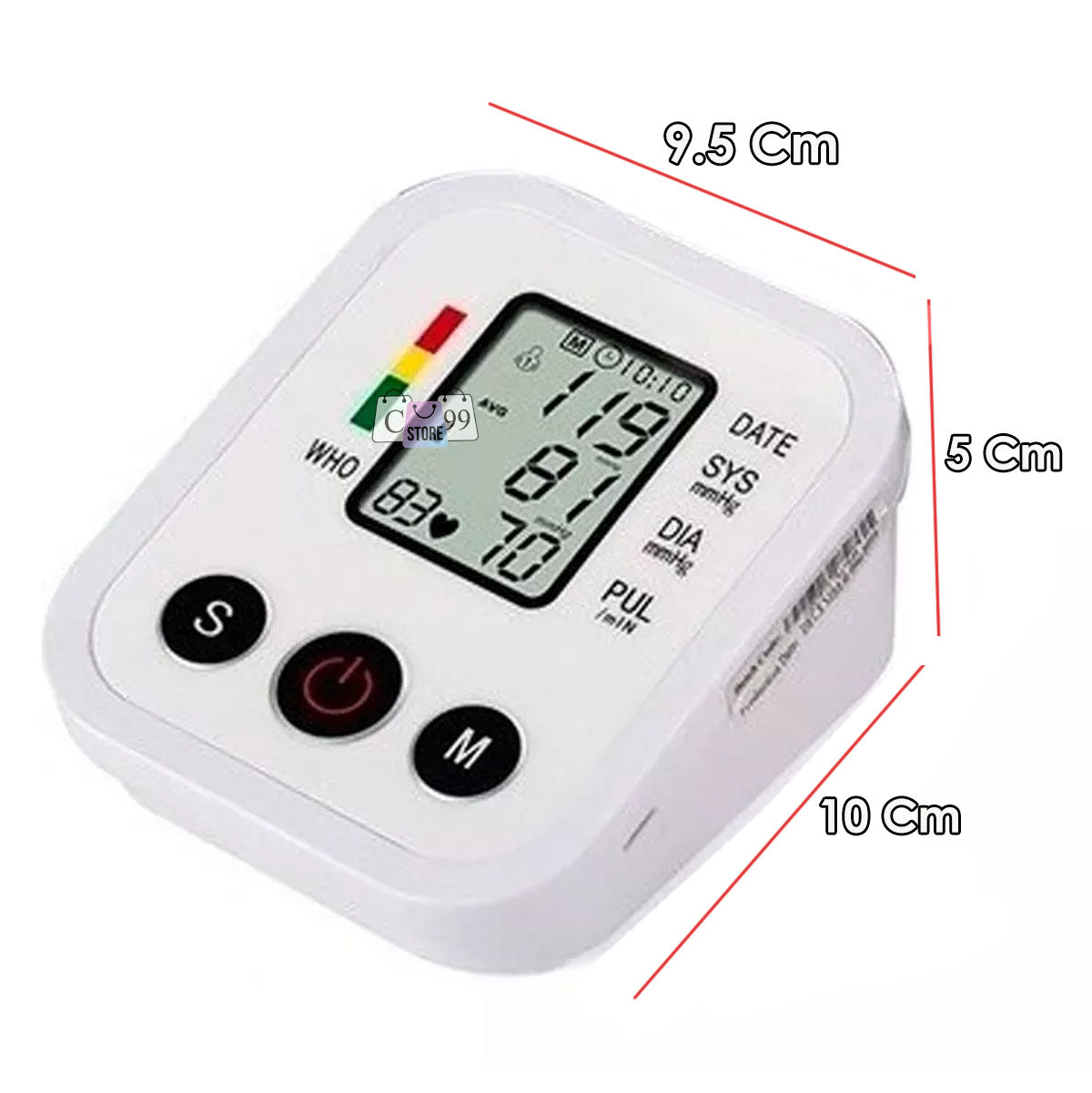 Monitor automático de pulso de presión arterial LCD con diseño portátil, fácil de llevar. Mide los latidos del usuario proporcionando una advertencia efectiva de enfermedad cardíaca y permitiendo el monitoreo de la presión arterial en casa o fuera.Características:- Pantalla LCD clara- La pantalla digital LCD grande muestra de manera nítida la presión sistólica, presión diastólica, frecuencia de pulso y la fecha, hora, usuario, facilitando el registro de datos.- Alta precisión- No incluye cargador ni usb- Brazalete de brazo cómodo- Brazalete superior del brazo ajustable, adecuado para una circunferencia del brazo superior de 22-32 cm.*Alerta al instante si se detecta un latido cardíaco irregular durante la medición de la presión arterialFunciona con: 4 pilas AAA